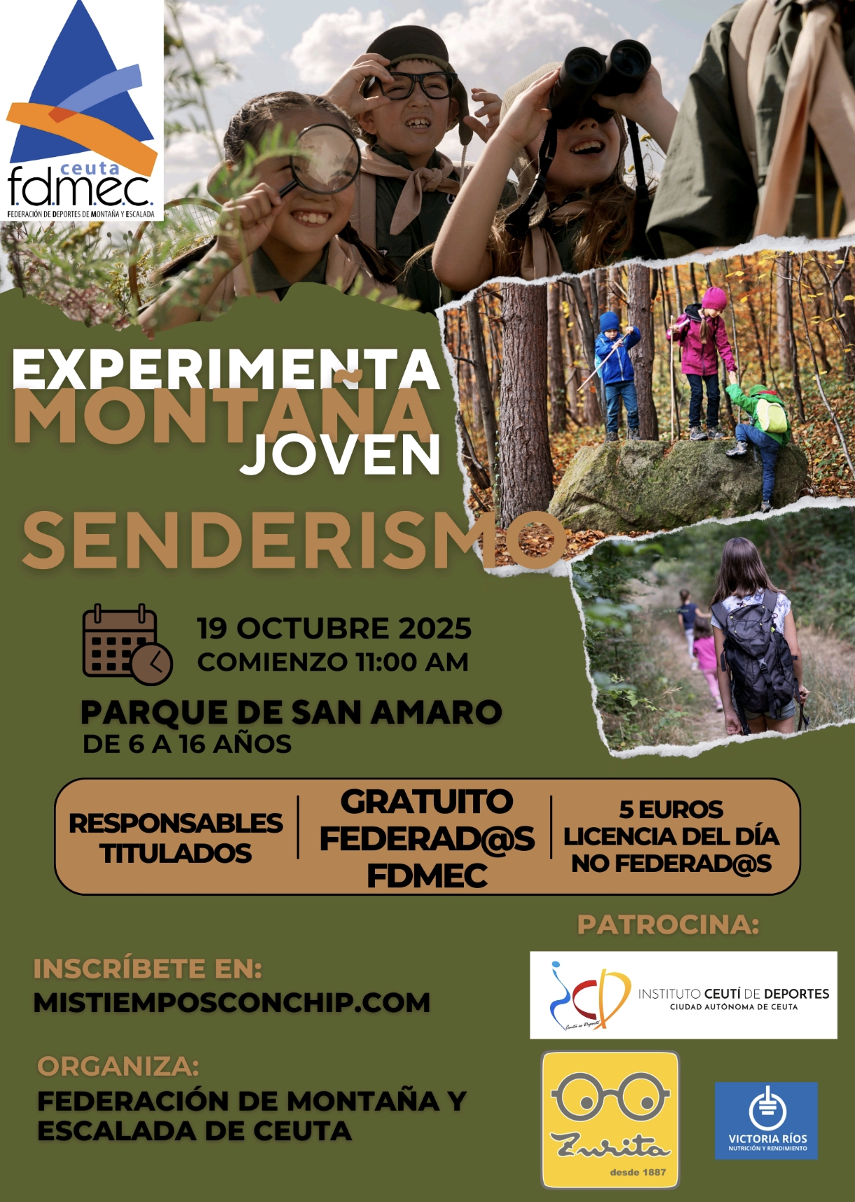 LA ACTIVIDAD ORGANIZADA POR LA FEDERACIÓN DE MONTAÑA Y ESCALADA DE CEUTA, VA DIRIGIDA A TODOS LOS MENORES ENTRE 6 Y 16 AÑOS. TODOS LOS MENORES QUE NO TENGAN EMAIL PROPIO PARA REALIZAR LA INSCRIPCIÓN TENDRÁN QUE REALIZAR LA INSCRIPCIÓN SIN CORREO ELECTRÓNICO.
