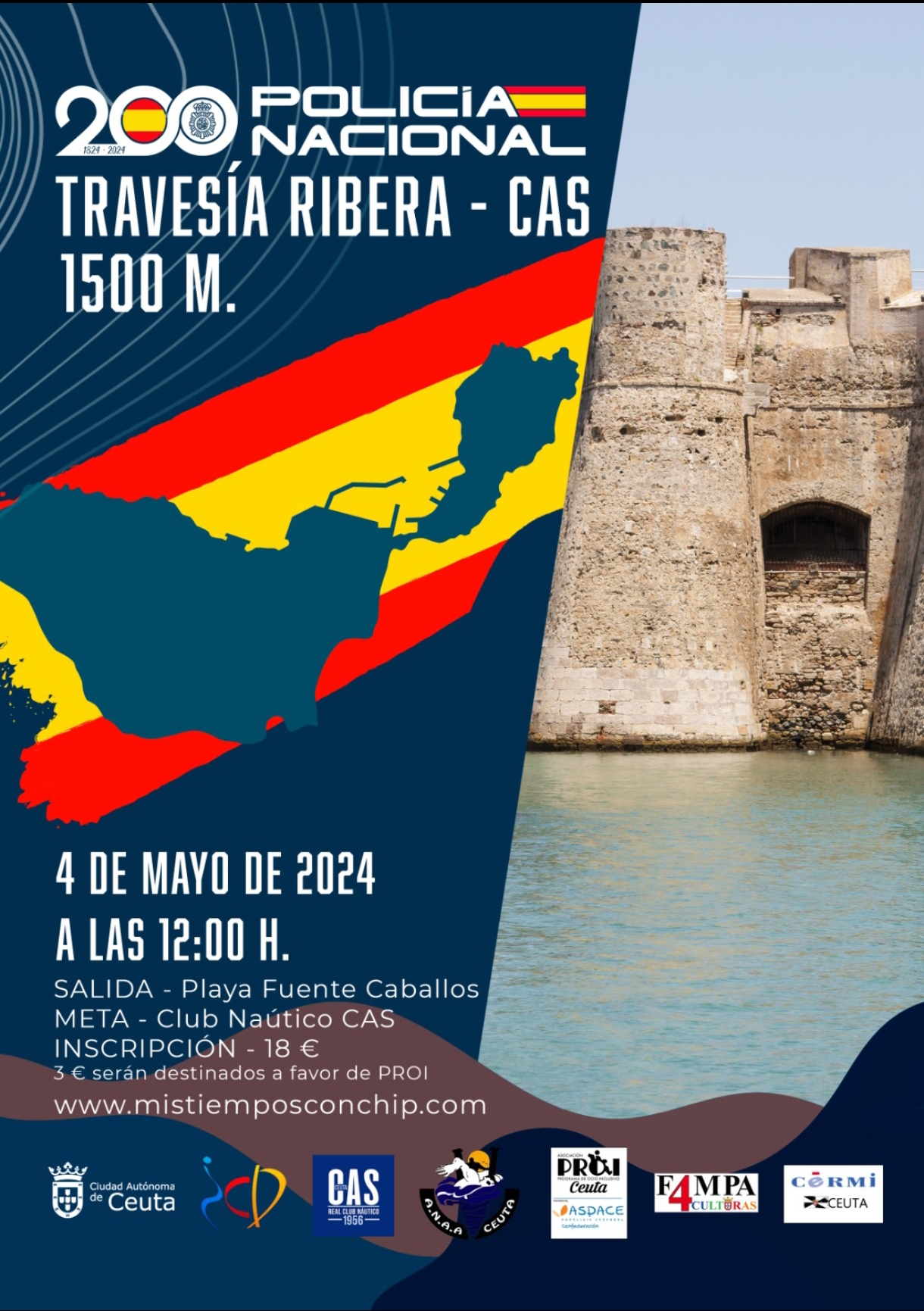 TENDRÁN ASEGURADA LA CAMISETA CONMEMORATIVA TODAS LAS PERSONAS INSCRITAS HASTA EL 26 DE ABRIL. POSTERIORMENTE NO GARANTIZAMOS LA PRENDA. LA PRUEBA TIENE CARÁCTER SOLIDARIO Y 3€ DE CADA INSCRIPCIÓN IRÁN DONADOS A LA ASOCIACIÓN PROI CEUTA.